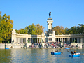 Ретиро главный парк Мадрида. Здесь можно кататься на лодке по пруду, посещать выставки во дворце Веласкеса или просто гулять по аллеям, в которых с апреля по июнь цветут розы всех сортов.